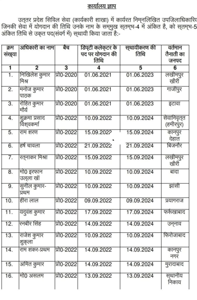 IAS Transfer In UP- सभी अधिकारियों का नाम
