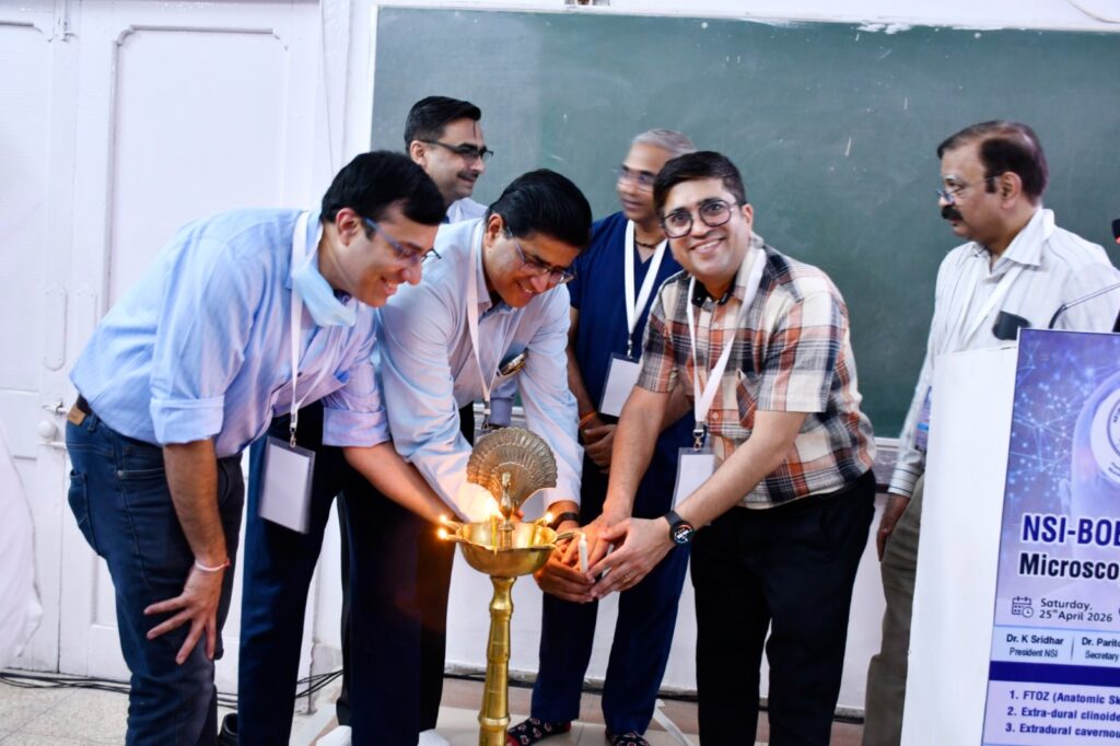 “KGMU Skull Base Workshop 2026: लखनऊ के KGMU में NSI–BOE द्वारा आयोजित कैडावरिक वर्कशॉप में एडवांस माइक्रोस्कोपिक स्कल बेस सर्जरी की ट्रेनिंग दी गई। देशभर के डॉक्टरों ने लिया हिस्सा।”