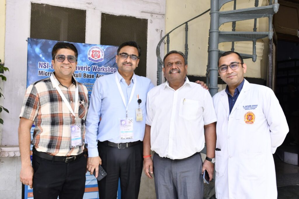 वर्कशॉप के दौरान प्रतिभागियों को स्कल बेस सर्जरी की जटिल और अत्याधुनिक तकनीकों—जैसे FTOZ क्रेनियोटॉमी, एक्स्ट्राड्यूरल क्लिनॉइडेक्टॉमी, कैवर्नस साइनस एक्सपोजर और एंटीरियर पेट्रोसेक्टॉमी—का गहन और व्यावहारिक प्रशिक्षण दिया गया। यह प्रशिक्षण कैडावरिक स्किल लैब में अत्याधुनिक उपकरणों और विशेषज्ञ मार्गदर्शन के साथ सम्पन्न हुआ, जिससे डॉक्टरों को वास्तविक ऑपरेशन जैसी परिस्थितियों में सीखने का अवसर मिला।