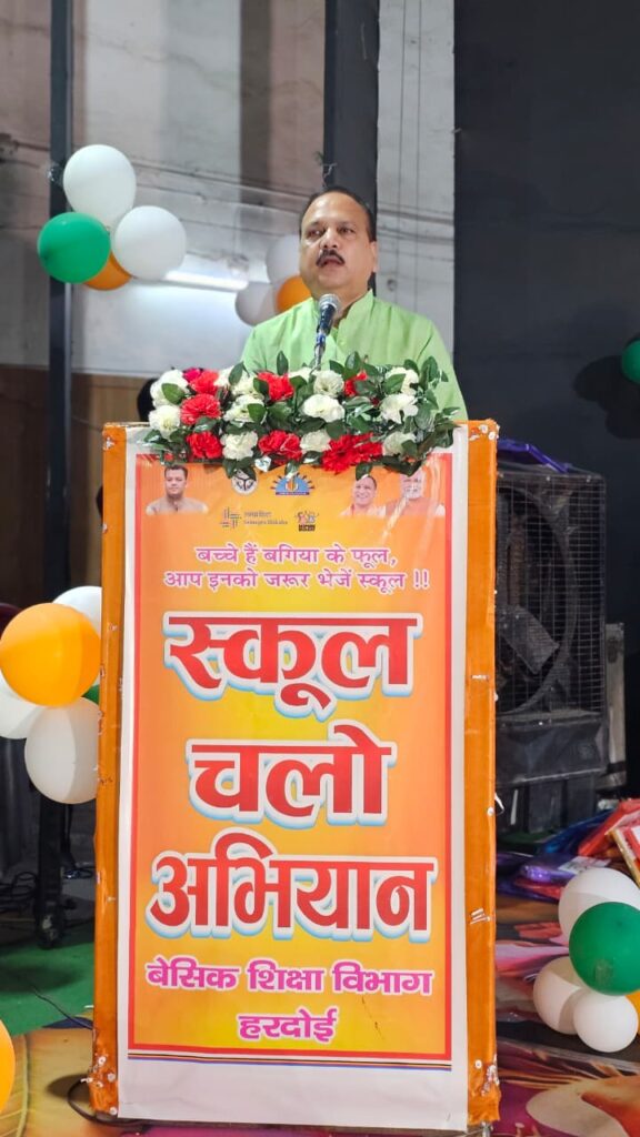 हरदोई। माधवेन्द्र प्रताप सिंह उर्फ रानू भइया ने हरदोई जनपद मुख्यालय स्थित रसखान प्रेक्षागृह में आयोजित ‘स्कूल चलो अभियान’ कार्यक्रम में भाग लिया।