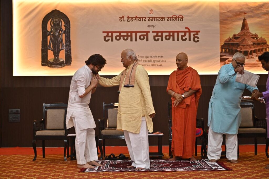 नागपुर। डॉ. हेडगेवार स्मारक समिति द्वारा राष्ट्रीय स्वयंसेवक संघ मुख्यालय, नागपुर में मंगलवार को एक गरिमामय सम्मान समारोह का आयोजन किया गया। इस अवसर पर राष्ट्रीय स्वयंसेवक संघ के सरसंघचालक मोहन भागवत ने श्री राम जन्मभूमि मंदिर निर्माण में सराहनीय योगदान देने वाली 30 विभूतियों को सम्मानित किया।