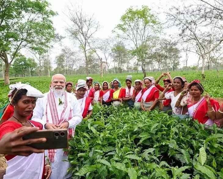 दौरे के दौरान पीएम मोदी ने खुद चाय की पत्तियां तोड़ीं और बागान में काम कर रही महिलाओं व श्रमिकों के साथ बातचीत की। उन्होंने उनके साथ सेल्फी भी ली, जिसकी तस्वीरें सोशल मीडिया पर तेजी से वायरल हो रही हैं।