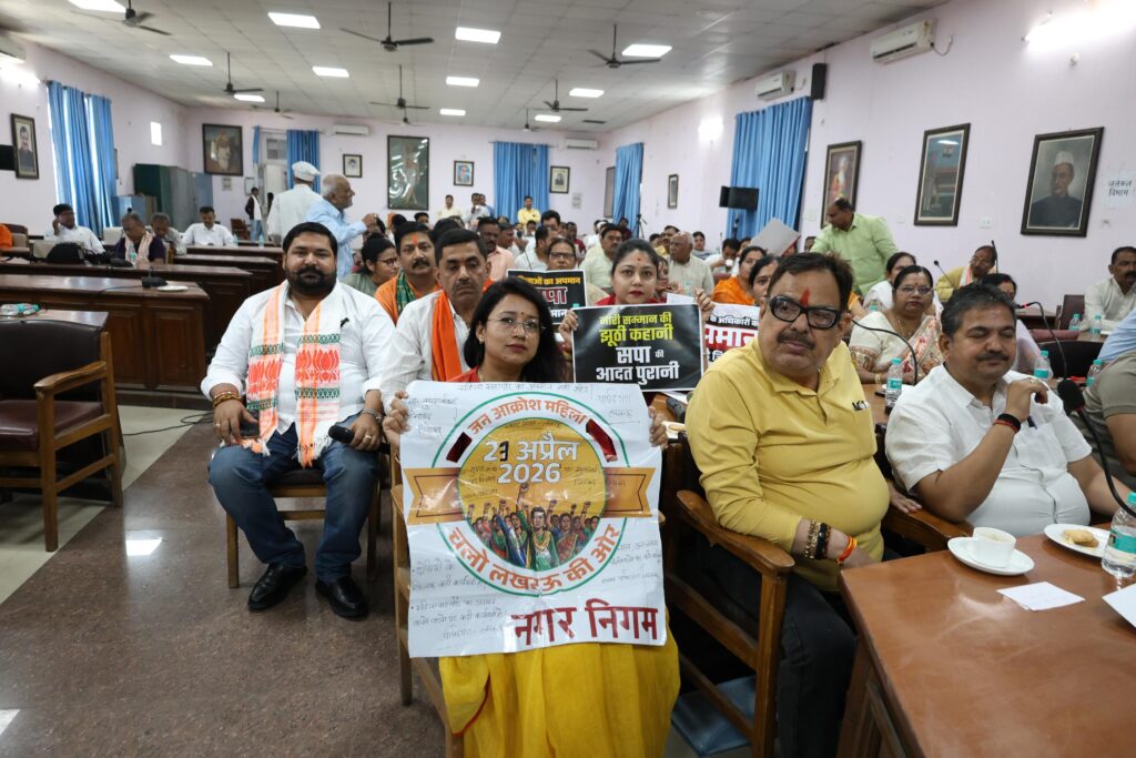 “लखनऊ नगर निगम के विशेष सदन में ‘नारी शक्ति वंदन अधिनियम’ पर जोरदार चर्चा हुई। महापौर सुषमा खर्कवाल ने आवास पर हुई घटना पर कड़ी प्रतिक्रिया देते हुए विपक्ष पर हमला बोला। 93 पार्षदों ने सर्वसम्मति से निंदा प्रस्ताव पारित कर नारी सम्मान के पक्ष में मजबूत संदेश “